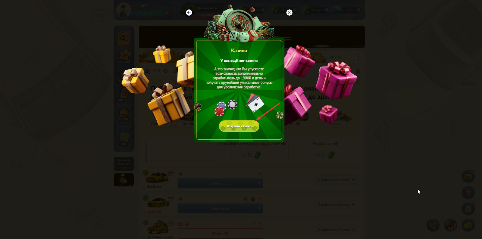 Чтобы построить “Казино” нужно нажать на кнопку “Открыть казино”