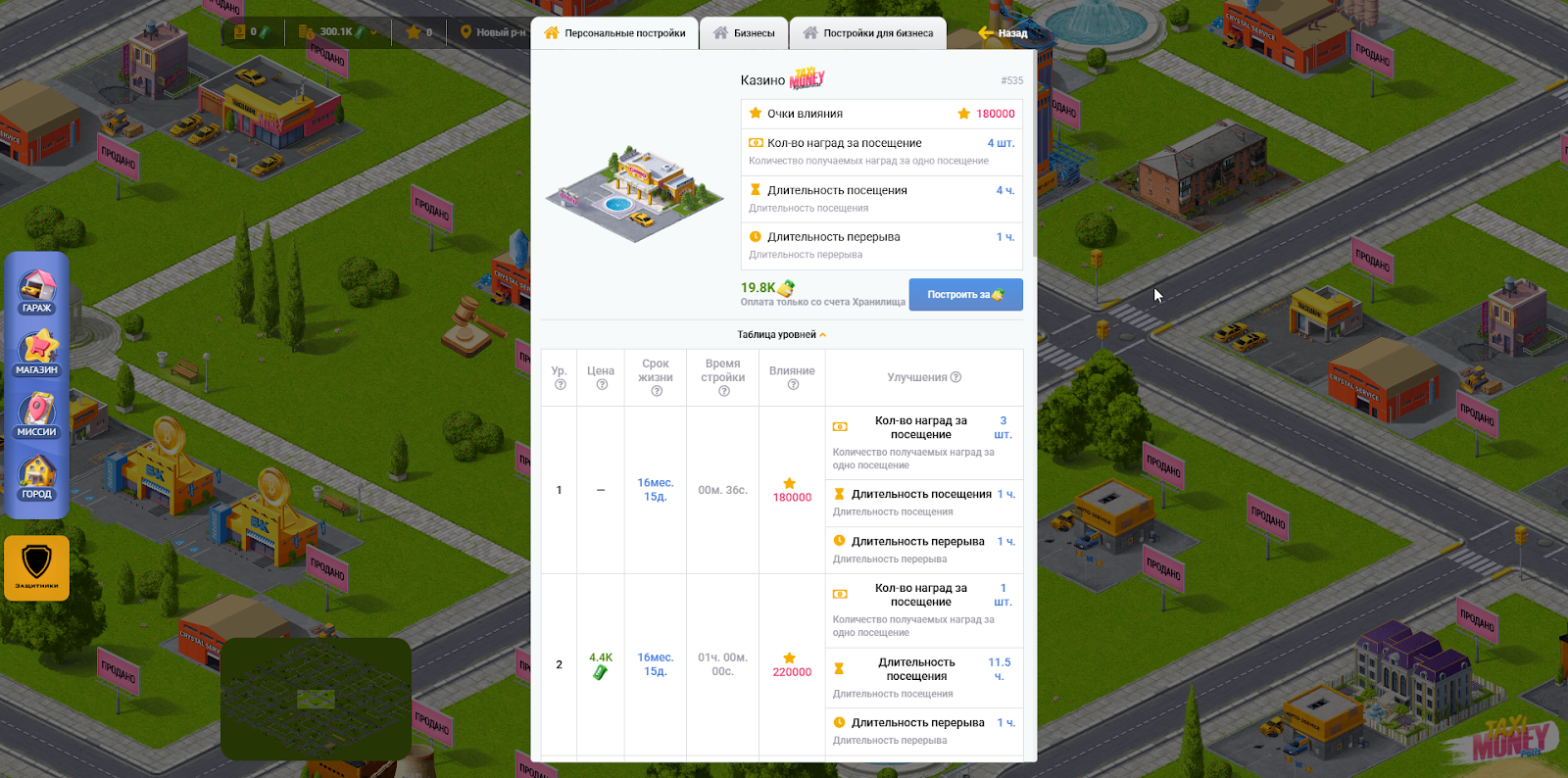 Казино - первое здание на проекте Taxi-Money, которое приносит пассивный доход на Пассажирский счет и еще много других наград! Чем больше у Вас зданий казино — тем больше Ваш доход!