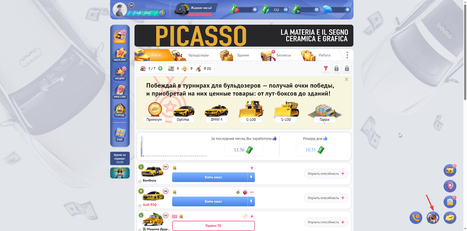 А также можно воспользоваться все тем же виджетом (иконкой “Казино”) рядом с иконками квестов, чата и инвентаря