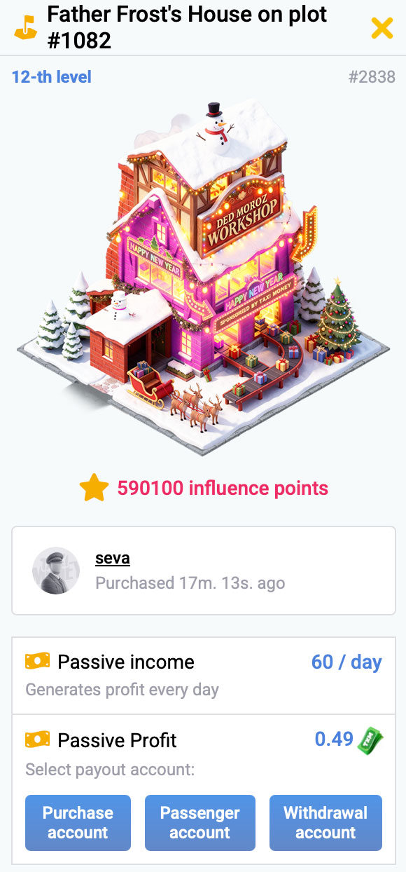 As a reminder, the higher your influence, the more passive income you'll earn from all commissions and taxes in the building's area! It also increases your chances of becoming the district's mayor, which will allow you to receive additional tax benefits!